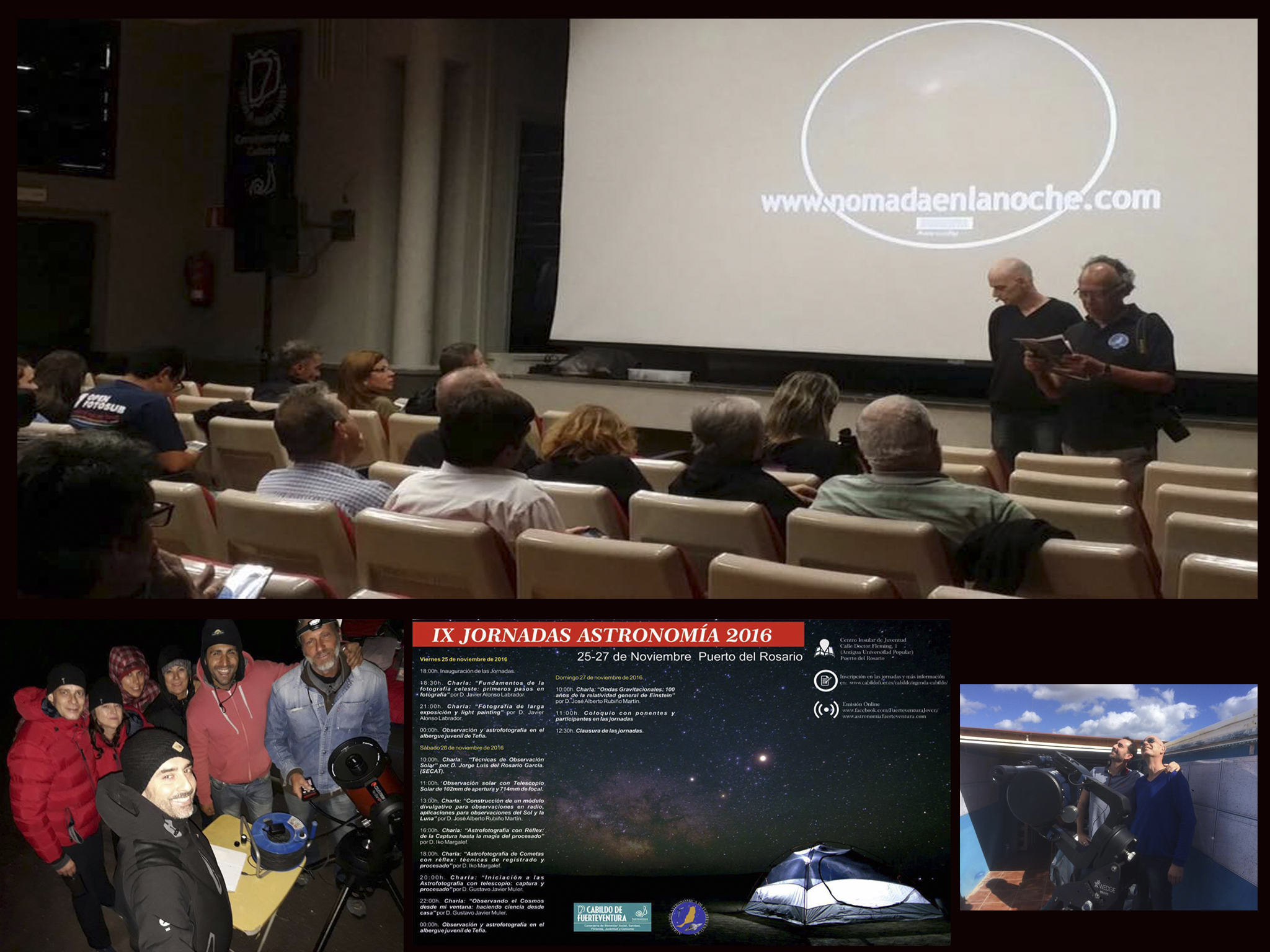 El 26 de noviembre del 2016 tuve la gran suerte de ofrecer dos ponencias en las novenas jornadas de Astronomía de Fuerteventura. Una de Astrofotografía con cámara réflex y otra de Astrofotografía de Cometas, con dos horas en cada ponencia me dio tiempo de entrar en los detalles más técnicos de estas disciplinas. Fue un gran privilegio poder compartir mi pasión en esta maravillosa isla, con unos cielos espectaculares que han sabido preservar, y que son un ejemplo a seguir... A parte de la gran experiencia, me llevo para siempre un montón de amigos, los cuales me hicieron sentir como en casa. Mi más sincero agradecimiento a la Agrupación Astronómica y al Cabildo de Fuerteventura. máxima resolución AQUÍ