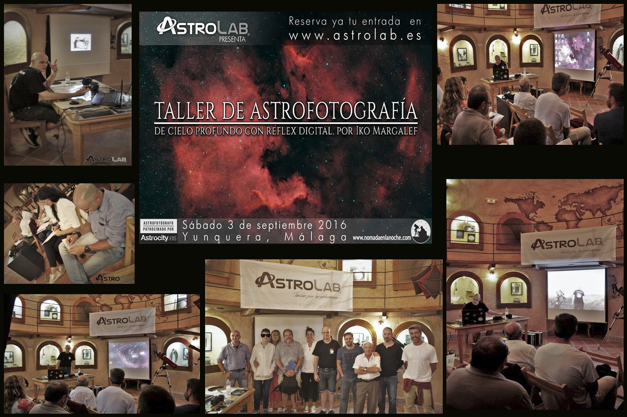 El sábado 3 de septiembre del 2.016 tuve el placer de impartir un curso sobre Astrofotografía con cámara réflex en las magníficas instalaciones de Astrolab, en Yunquera un bonito pueblo de la Sierra de las Nieves en Málaga. Astrolab es una empresa dedicada a la divulgación Astronómica que ofrece una gran variedad de actividades relacionadas con la Astronomía de forma muy amena y didáctica. Me sorprendió la variedad de edades de los alumnos y las distancias que tuvieron que recorrer algunos de ellos para asistir al curso.