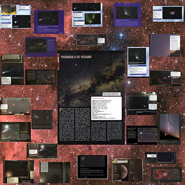 En los 7 años que llevo en la Astrofotografía he tenido la suerte de ver muchos de mis trabajos publicados en las revistas AstronomíA y la extinta Espacio, eso siempre ha sido una satisfacción personal y una motivación extra para mi. He hecho este collage con todas para no aburrir subiendo las 26,en el cual he destacado la que me hace y me hizo en su día más ilusión y es la foto central del collage, la fotografía a página completa del Triángulo de Verano con entrevista incluida