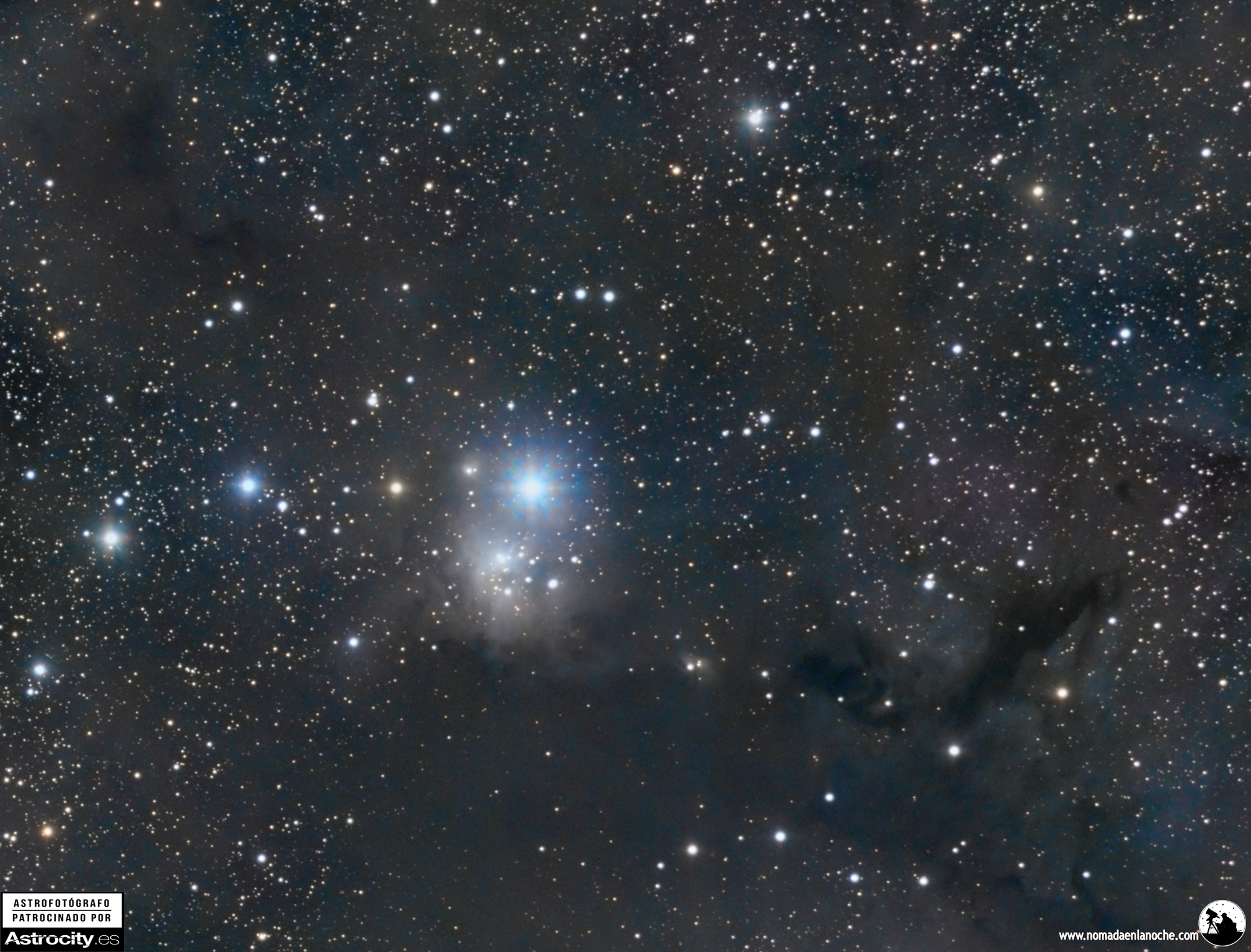 La región de formación estelar IC 348 es una zona rica en el naciminento de estrellas a unos 1.028 años luz de distancia. La nebulosa está situada debajo de la estrella Atik, la más brillante de la imagen que vendría a ser el pie derecho de la constelación de Perseo a una distancia de 1.475 años luz. Como curiosidad, comentar que en esta pequeña nebulosa se descubrieron tres enanas marrones con una masa estimada de menos de 10 veces la de Júpiter, colocándoles entre los objetos subestelares más jóvenes y de menos masa detectados hasta la fecha de su descubrimiento... Realizada en la comarca dels Ports,Castellón (Spain). Imágen LRGB 64x500 L y 50x120 R+G+B con la ASI1600 a -20ºC y el telescopio TS65Q máxima resolución AQUÍ o click en la imagen