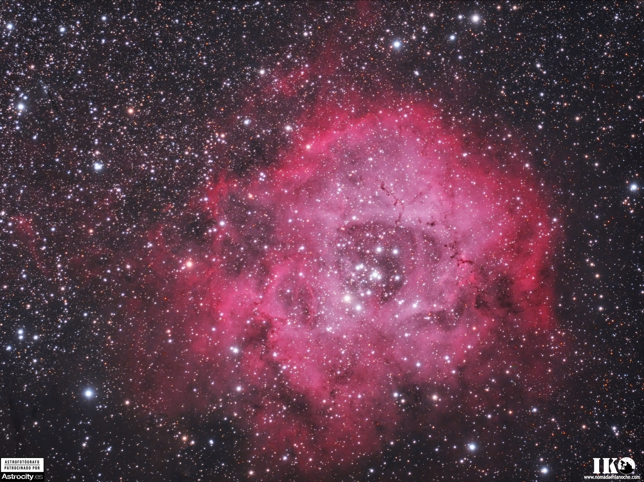 Esta conocida Nebulosa es una gran nube rica en HII situada a una distancia de 5.200 añoz luz en la constelación de Monococeros, la radiación de las estrellas jóvenes del cúmulo central excitan los átomos de la nebulosa, haciendo que emitan radiación que la hace brillar.