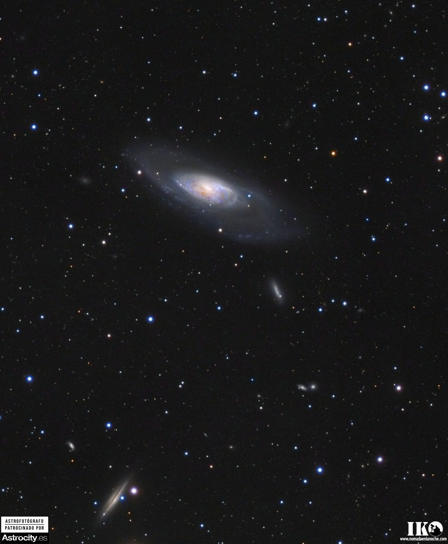 Situado en la constelación de Leo, a una distancia de 35 millones de años luz. Formado por las Galaxias M65, M66 y la preciosa NGC 3628, una Galaxia espiral vista de canto de la cual se intuye una "pequeña" cola de marea provocada por una interacción pasada con alguna gran Galaxia, esta "pequeña" cola está compuesta de cúmulos de estrellas jóvenes y azuladas, así como por regiones de formación estelar y se extiende unos 300 000 años luz de la galaxia. Realizada en Cabo de Gata (Almería) la imagen es la integración de 30 tomas de 600 segundos con la canon 550d ISO3200 y el TS65Q . Imagen a máxima resolución AQUÍ